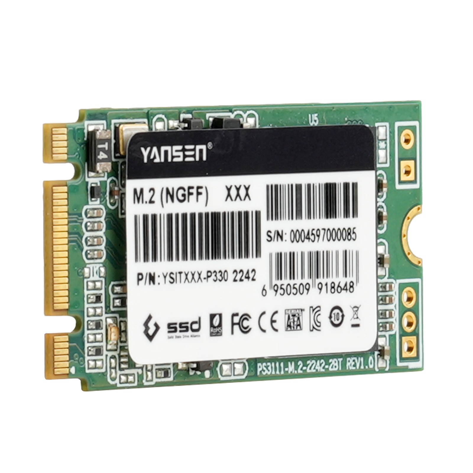 YSITXXX-P330 2242產品采用2通道SSD控制器和3D NAND Flash,接口尺寸為 M.2(B&M Key)2242,小巧的尺寸讓該產品可以集成在平臺內。YSITXXX-P330 2242 符合串口ATA I/II/III標準并支持SATA 3.2協議。