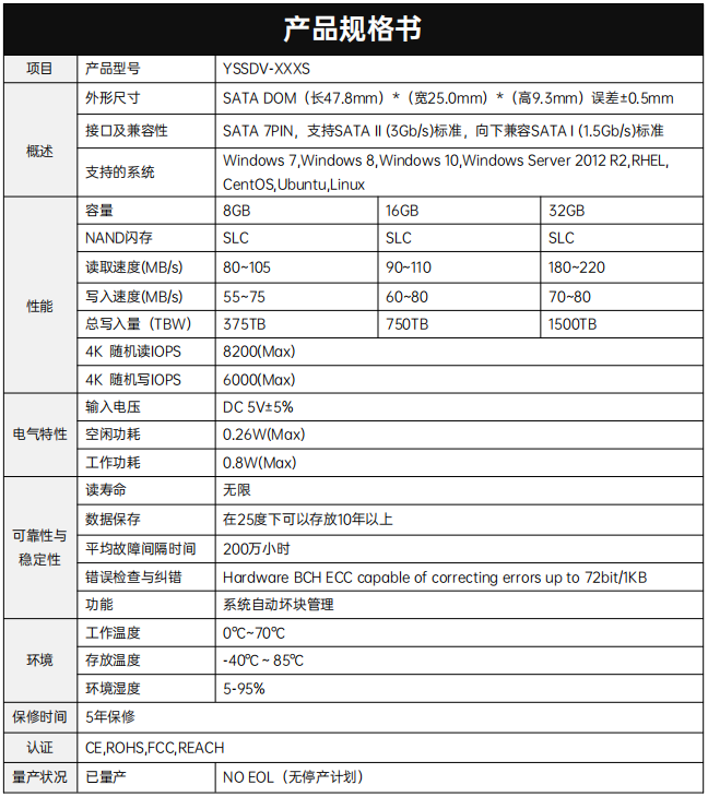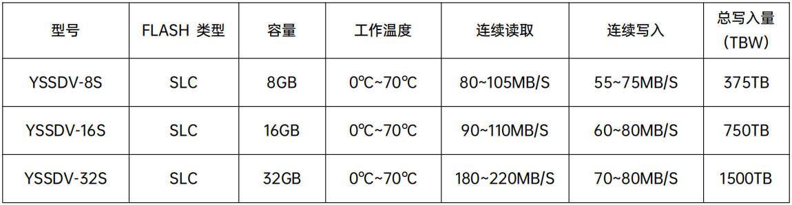 YSSDV-XXXS具有高性能,低功耗等特點,是存儲設備和計算機存儲應用的完美解決方案,先進的閃存管理算法保證更高的性能和數(shù)據(jù)完整性。